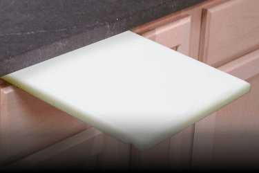 Great job on the custom cut! Fits perfectly in my kitchen counter pull out slot. I've installed a handle on one end so I can pull it out easily.